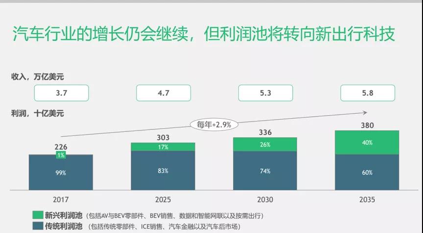 汽車(chē)行業(yè)產(chǎn)生的收入將繼續(xù)增長(zhǎng),未來(lái)幾年傳統(tǒng)業(yè)務(wù)仍將是主要的利潤(rùn)組成部分,新興“利潤(rùn)池”的增長(zhǎng)速度業(yè)相對(duì)較慢。