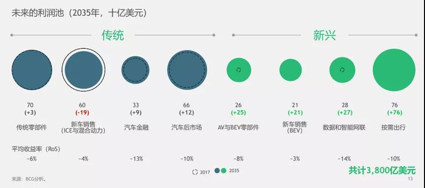 從BCG預(yù)測(cè)的利潤(rùn)池結(jié)構(gòu)可以發(fā)現(xiàn),2035年的行業(yè)利潤(rùn)組成和2017年完全不同。