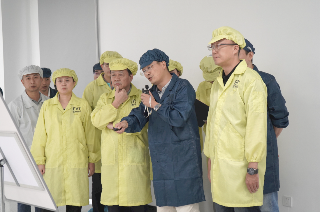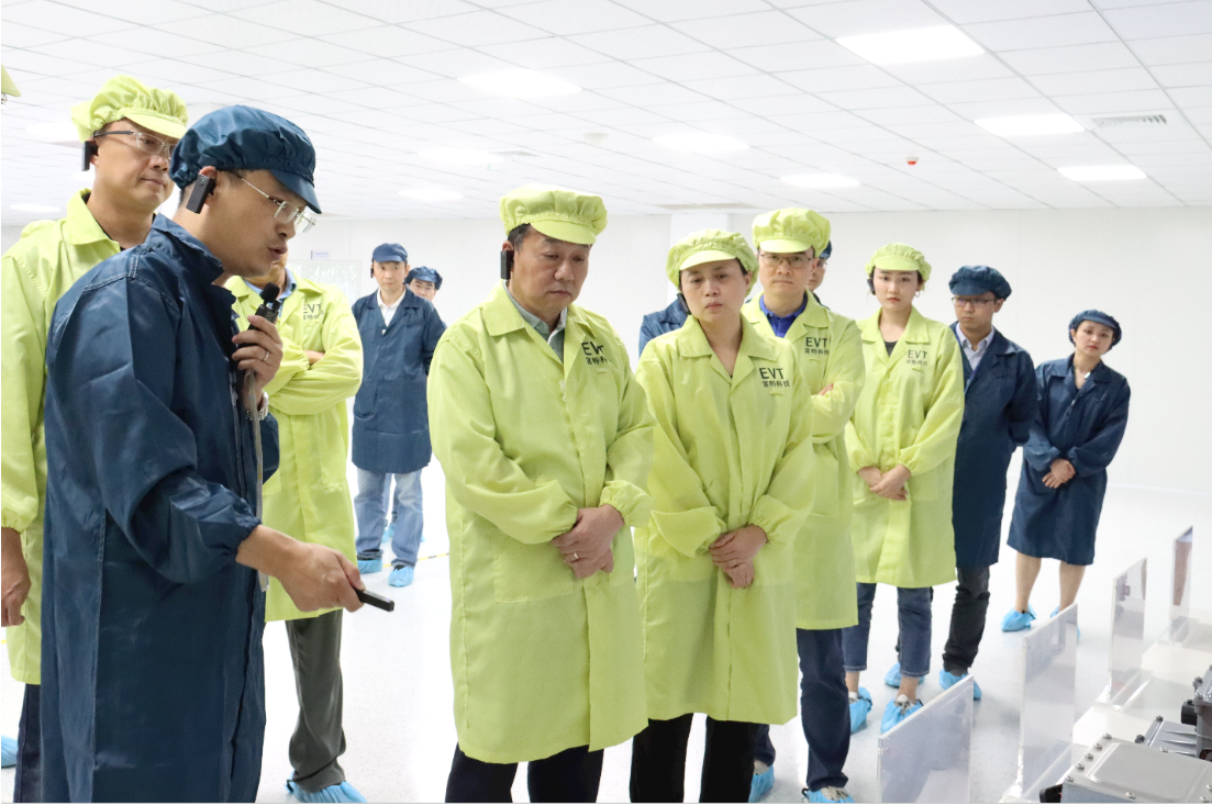 隨后,在現(xiàn)場(chǎng)工作人員的指引下,各位領(lǐng)導(dǎo)、嘉賓分為四個(gè)參觀指導(dǎo)小組,按照生產(chǎn)線要求著裝靜電服、佩戴靜電帽、穿戴靜電鞋套,進(jìn)入產(chǎn)線參觀指導(dǎo)。